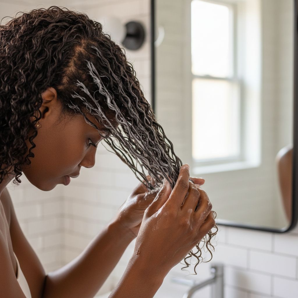Sur cheveux mouillés, après ton shampoing, essore légèrement.