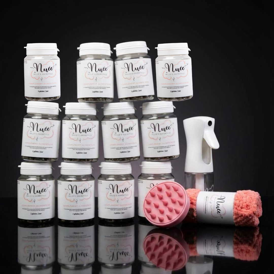 La Cure Nuée 1 an réunit l’intégralité des essentiels pour stimuler la pousse, renforcer la fibre capillaire et redonner vitalité et brillance à vos cheveux.